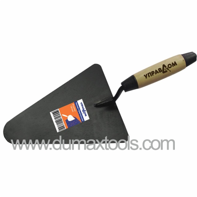 TRIANGLE BRICKLAYING TROWEL, BLACK LACQUERED CARBON STEEL BLADE, WOODEN HANDLE(LENGTH 130MM), IRON BAR ¢8MM