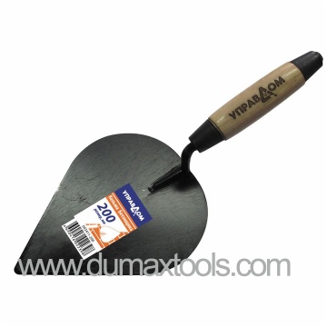 OLIVE-LEAF BRICKLAYING TROWEL, BLACK LACQUERED CARBON STEEL BLADE, WOODEN HANDLE(LENGTH 130MM), IRON BAR ¢8MM